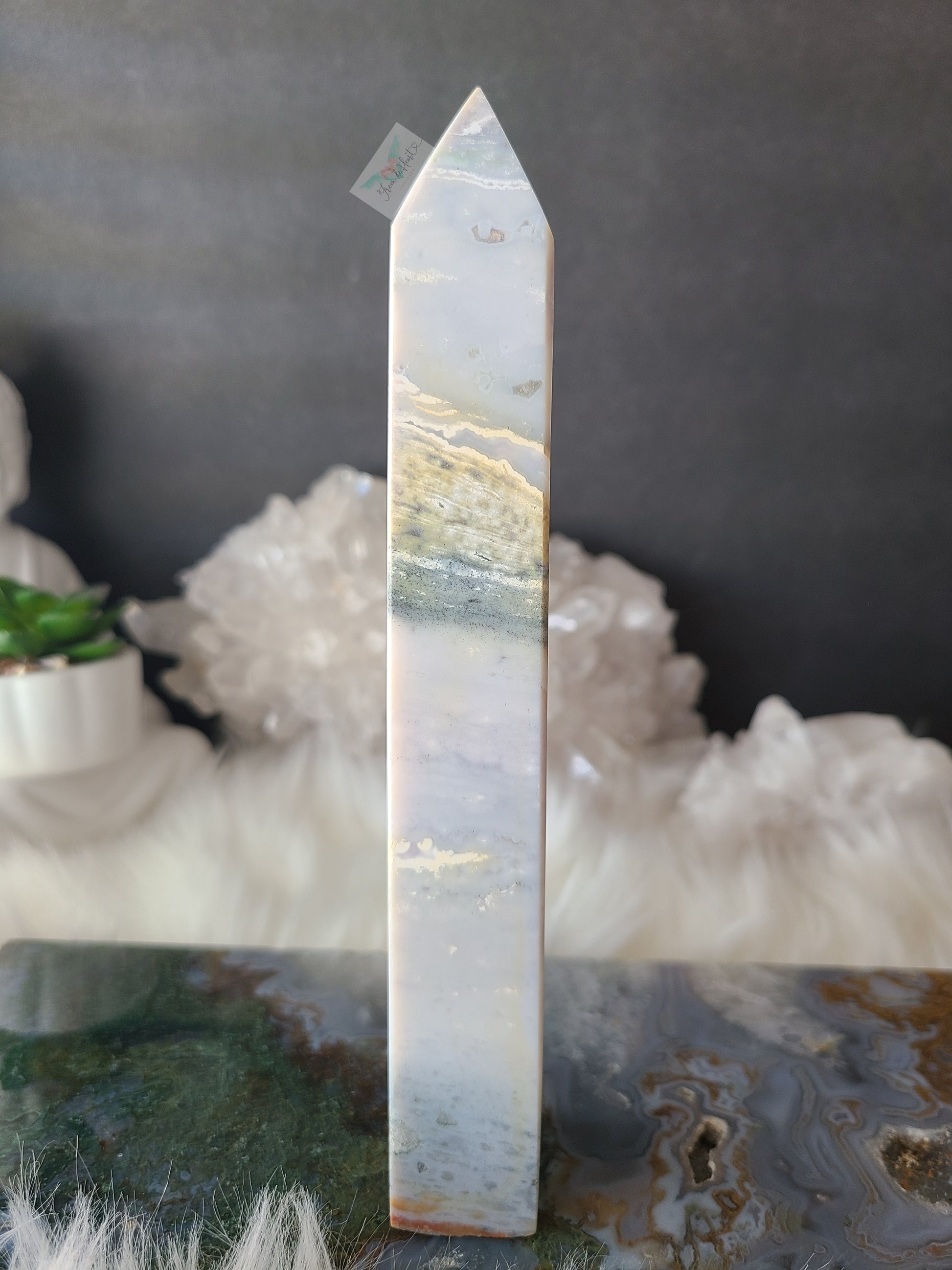 Ocean Jasper provides an uplifting but calming energy. It cleanses energy and helps repel negativity.
