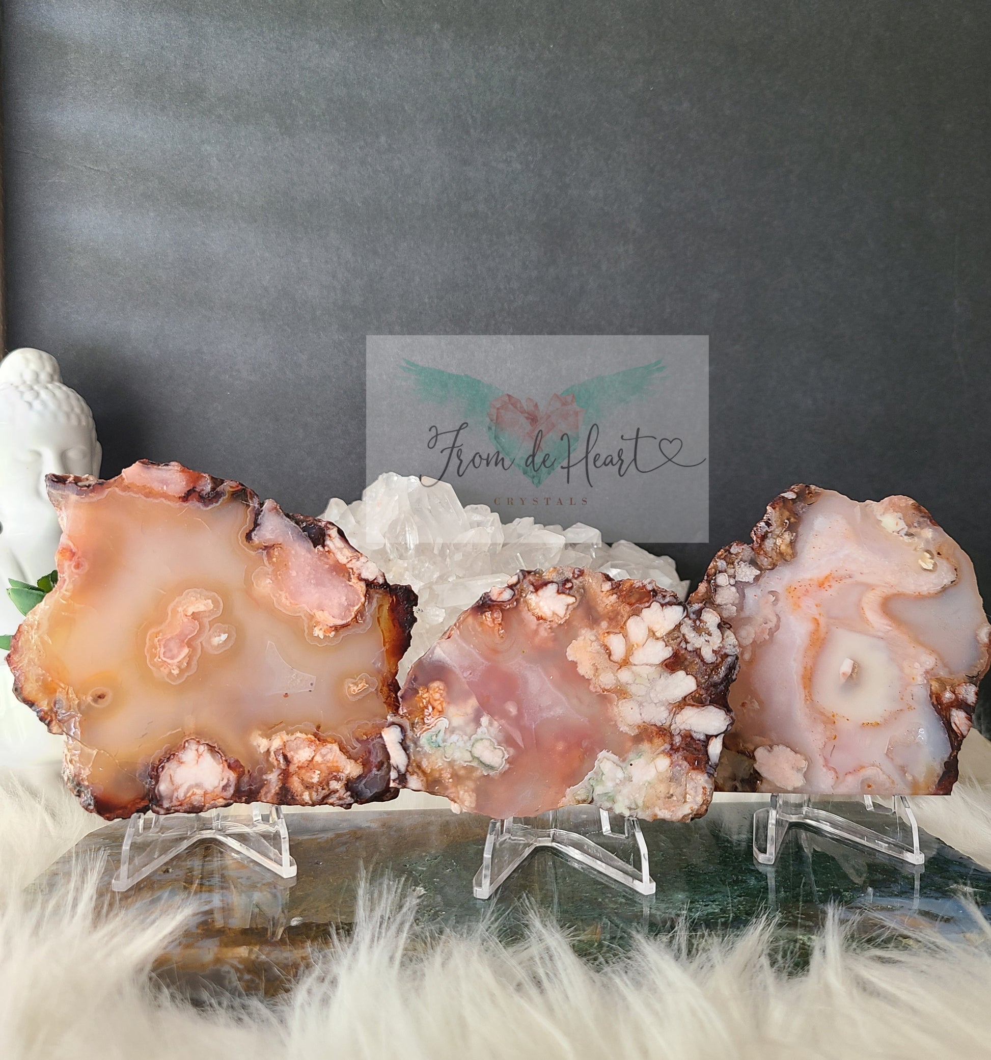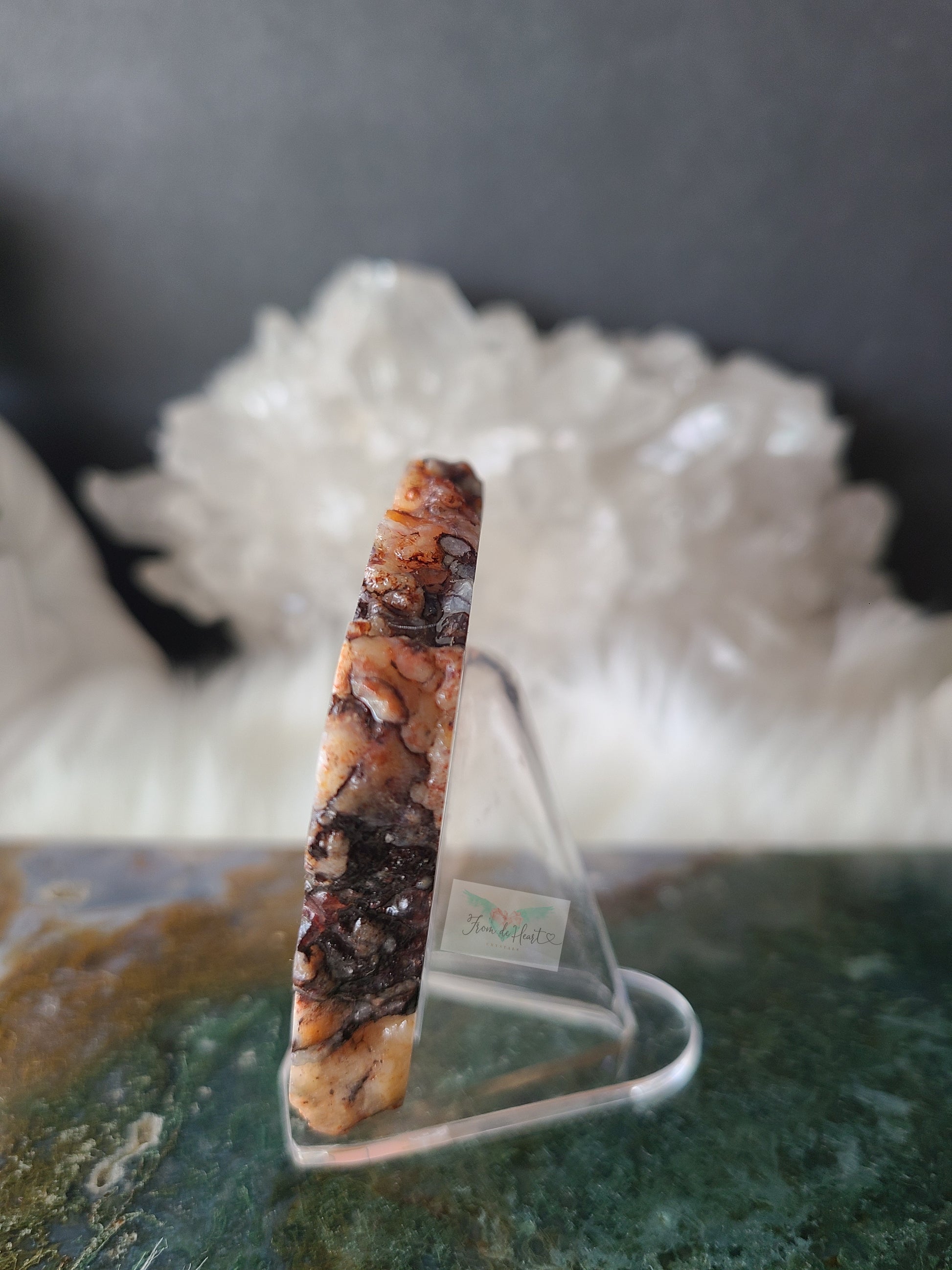 Flower Agate is said to foster confidence and gives a sense of purpose. It is the "I can do it", stone. It is the "anything is possible" if I try, stone. It's nurturing energy is gentle. Flower agate is also known for it's beauty. It's blooming flowers reminding us of our daily growth and the possibility of flourishing in abundance.