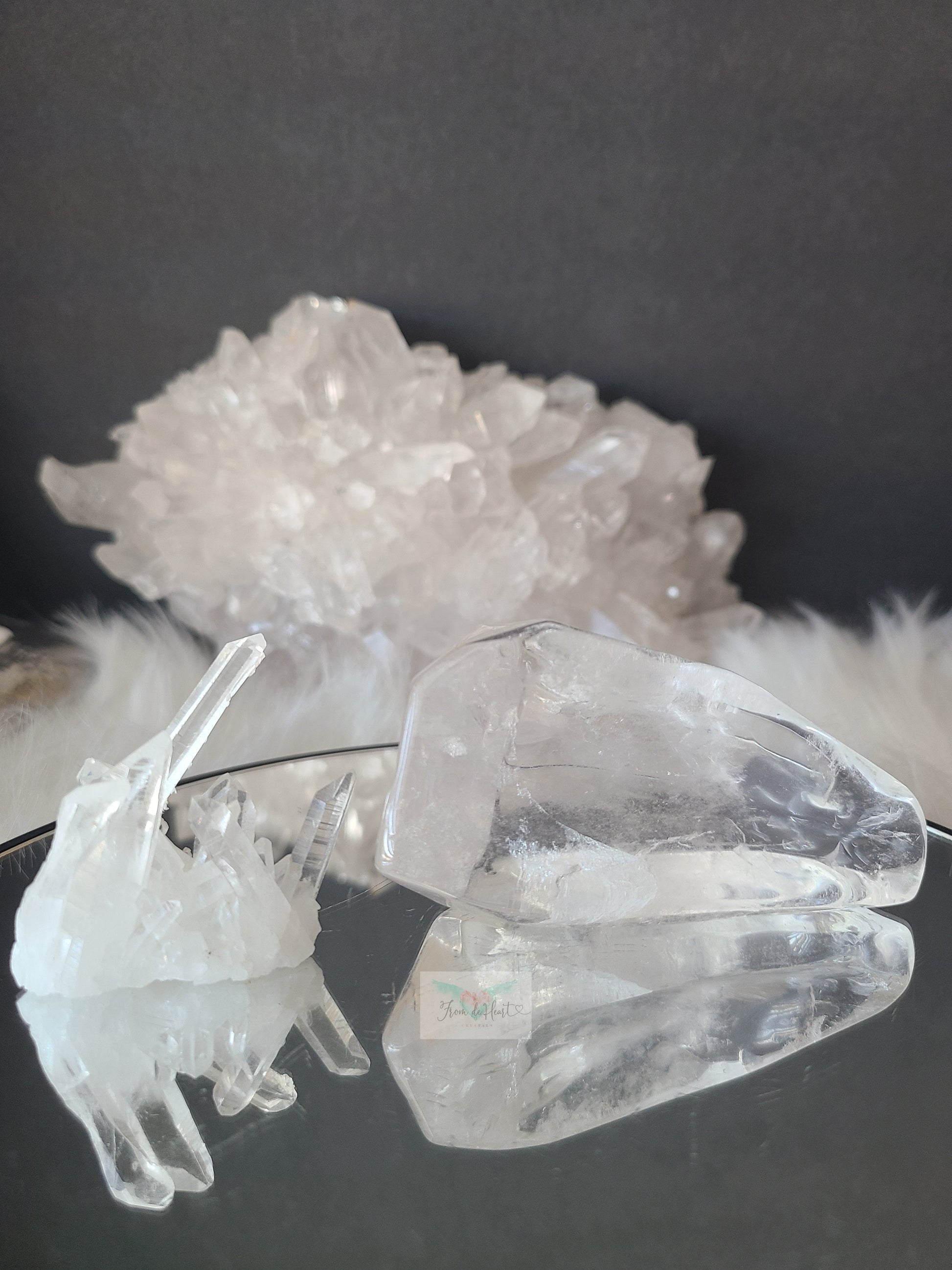 This listing is for (1) small clear quartz bowl and quartz cluster. You will receive a total of two pieces. You will receive the items shown.