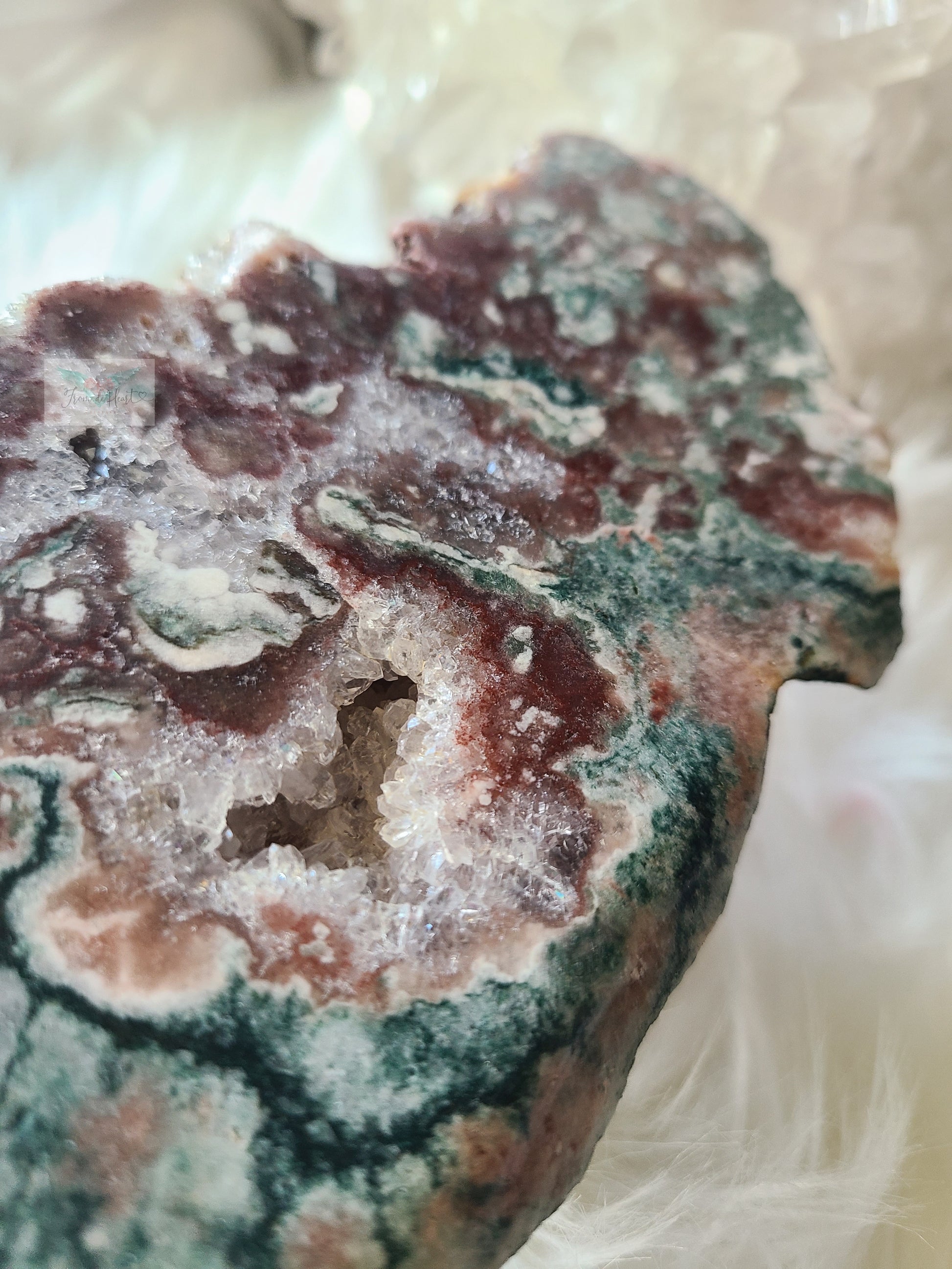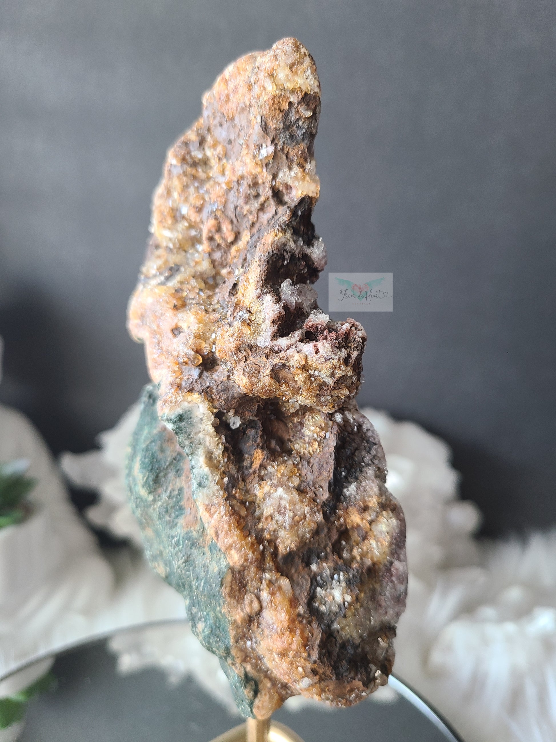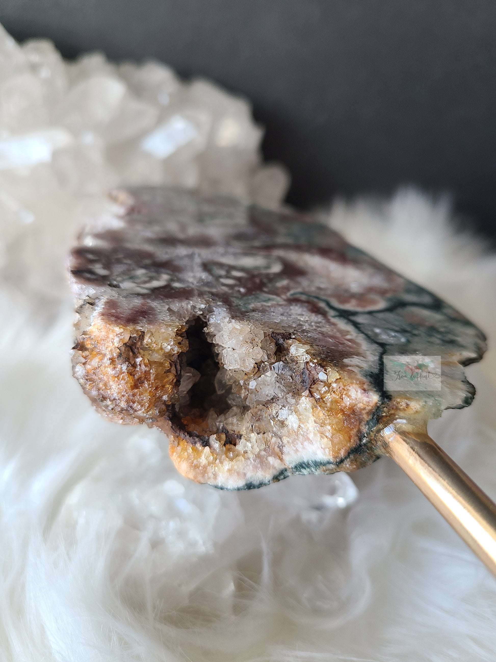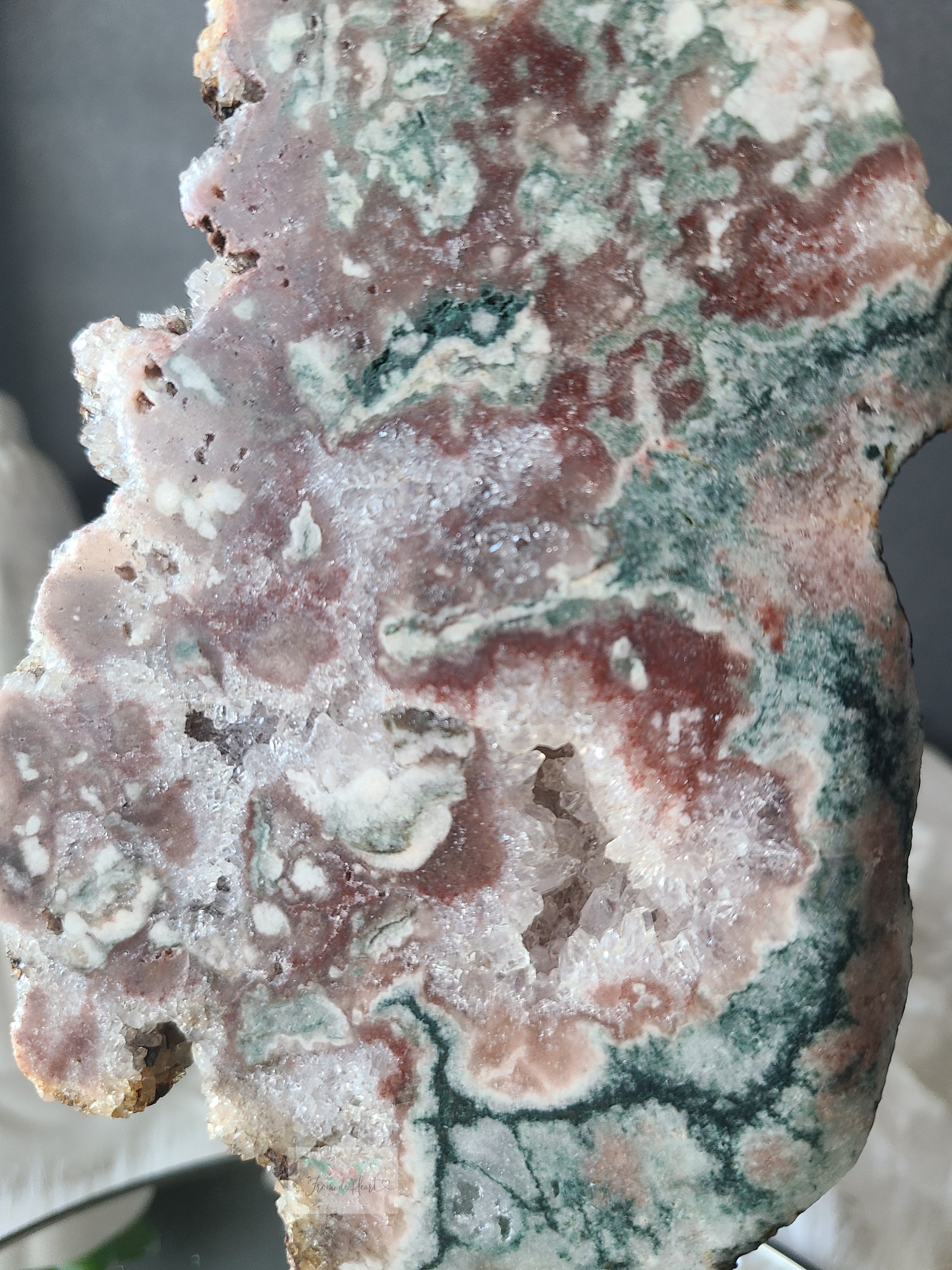 Druzy Pink Amethyst with Jasper Slab on Stand