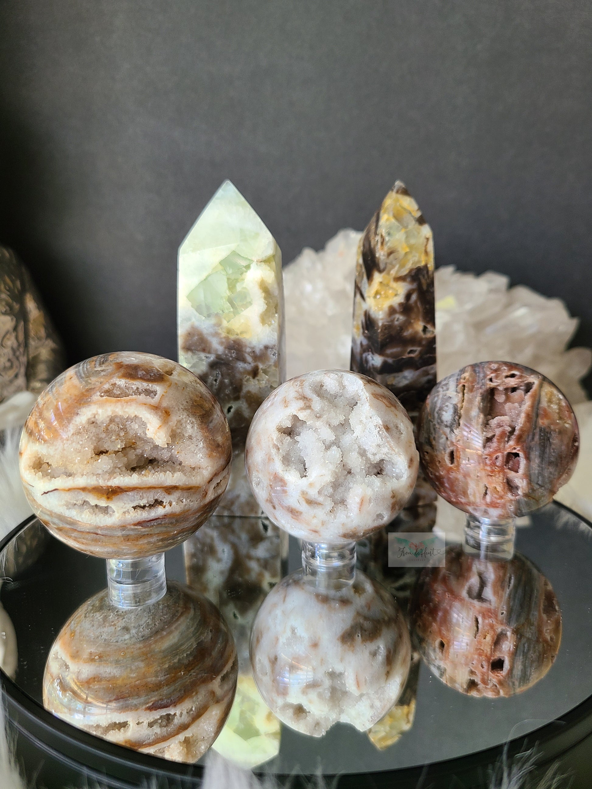This listing is for (1) high quality Sphalerite sphere. This sphere has druzy filled geodes.