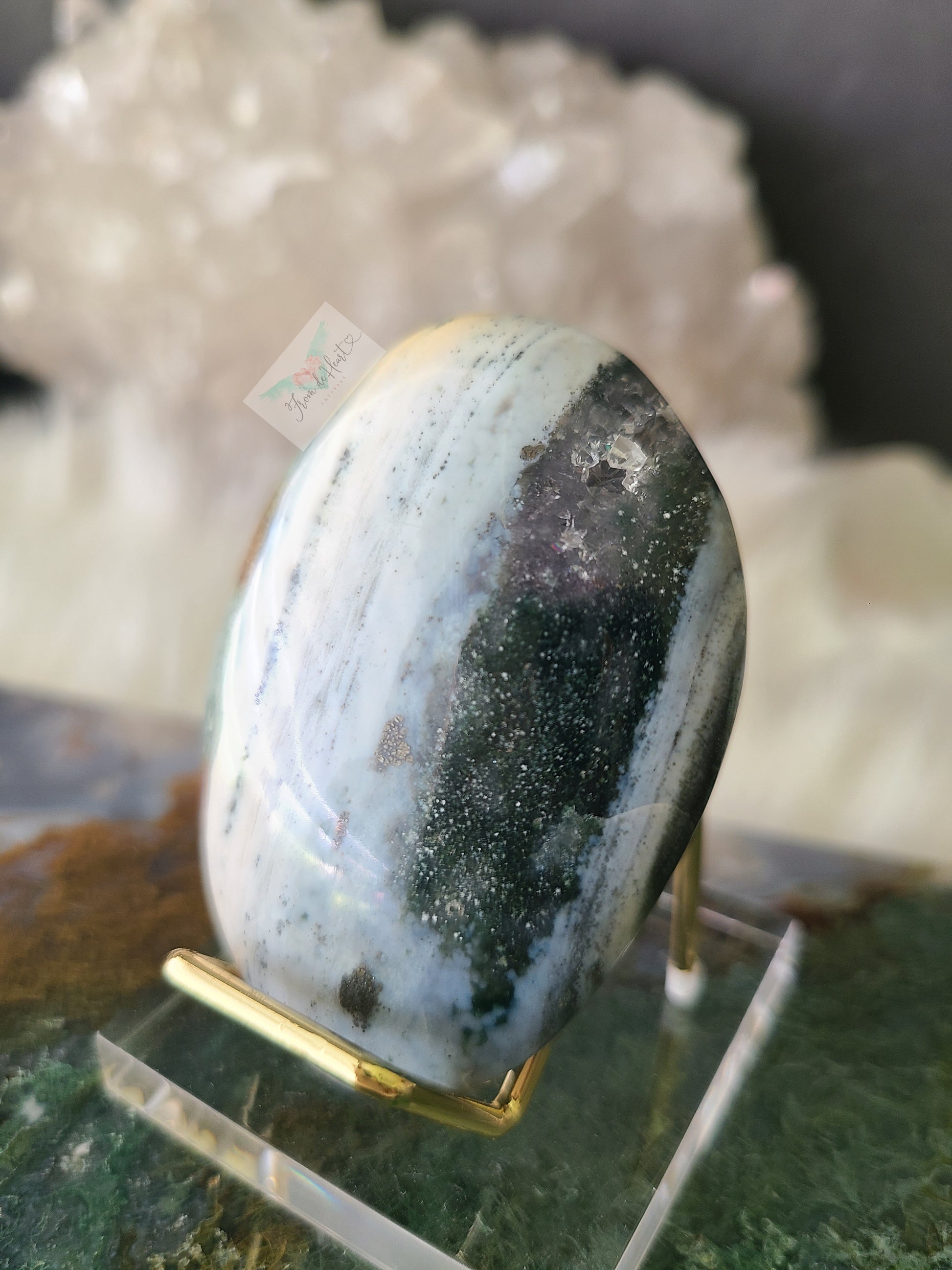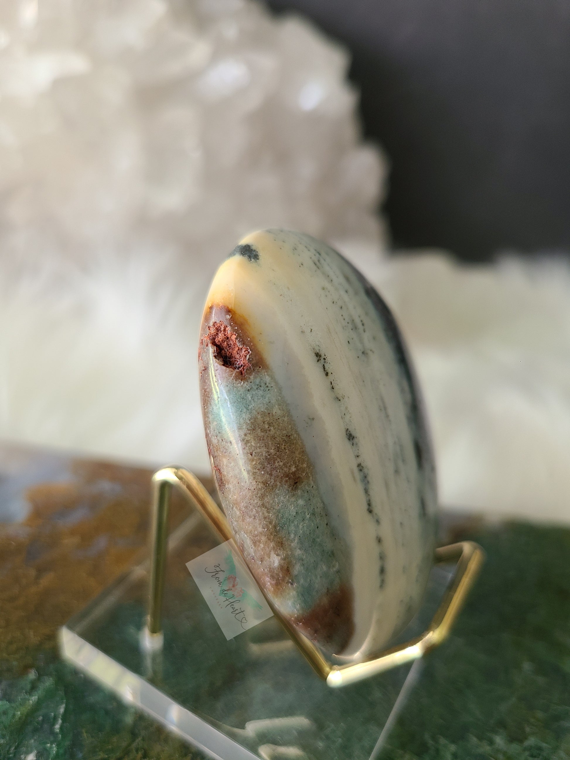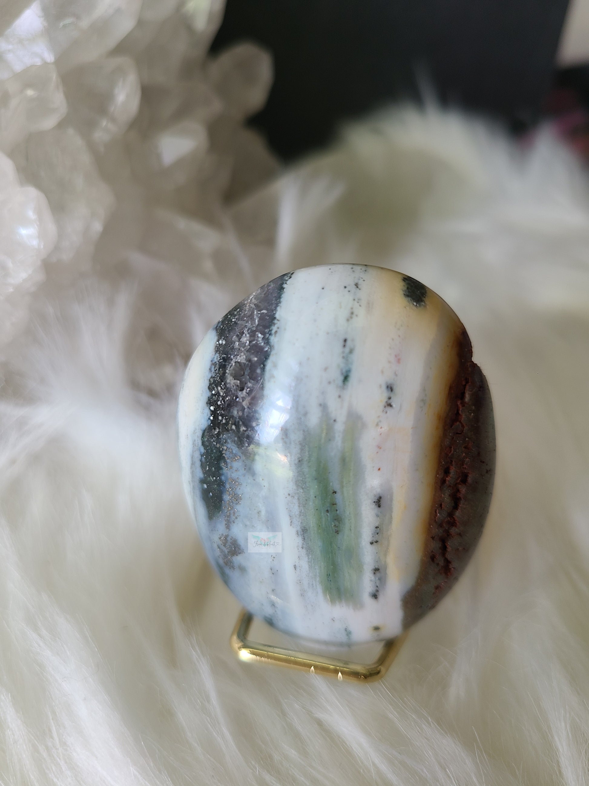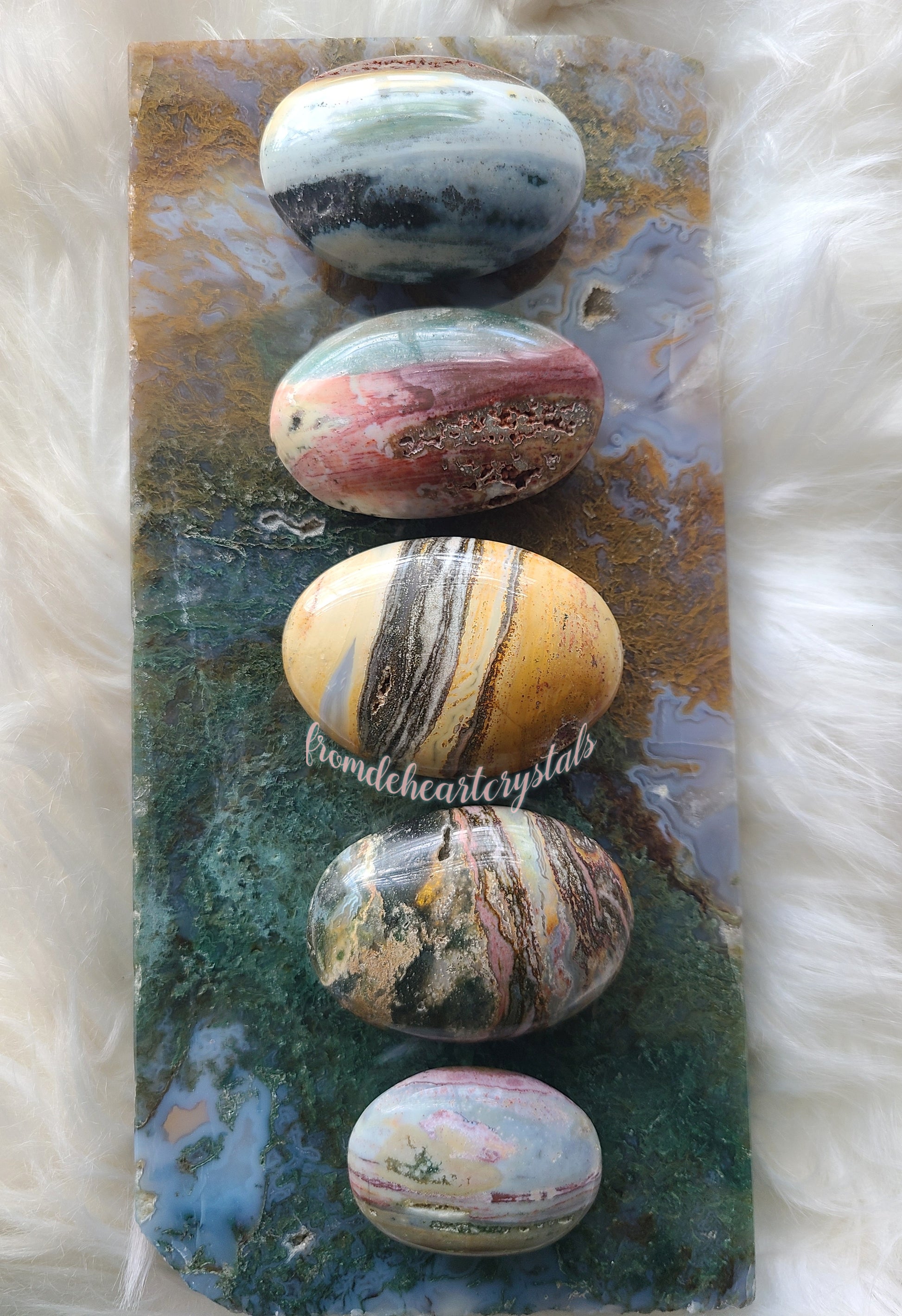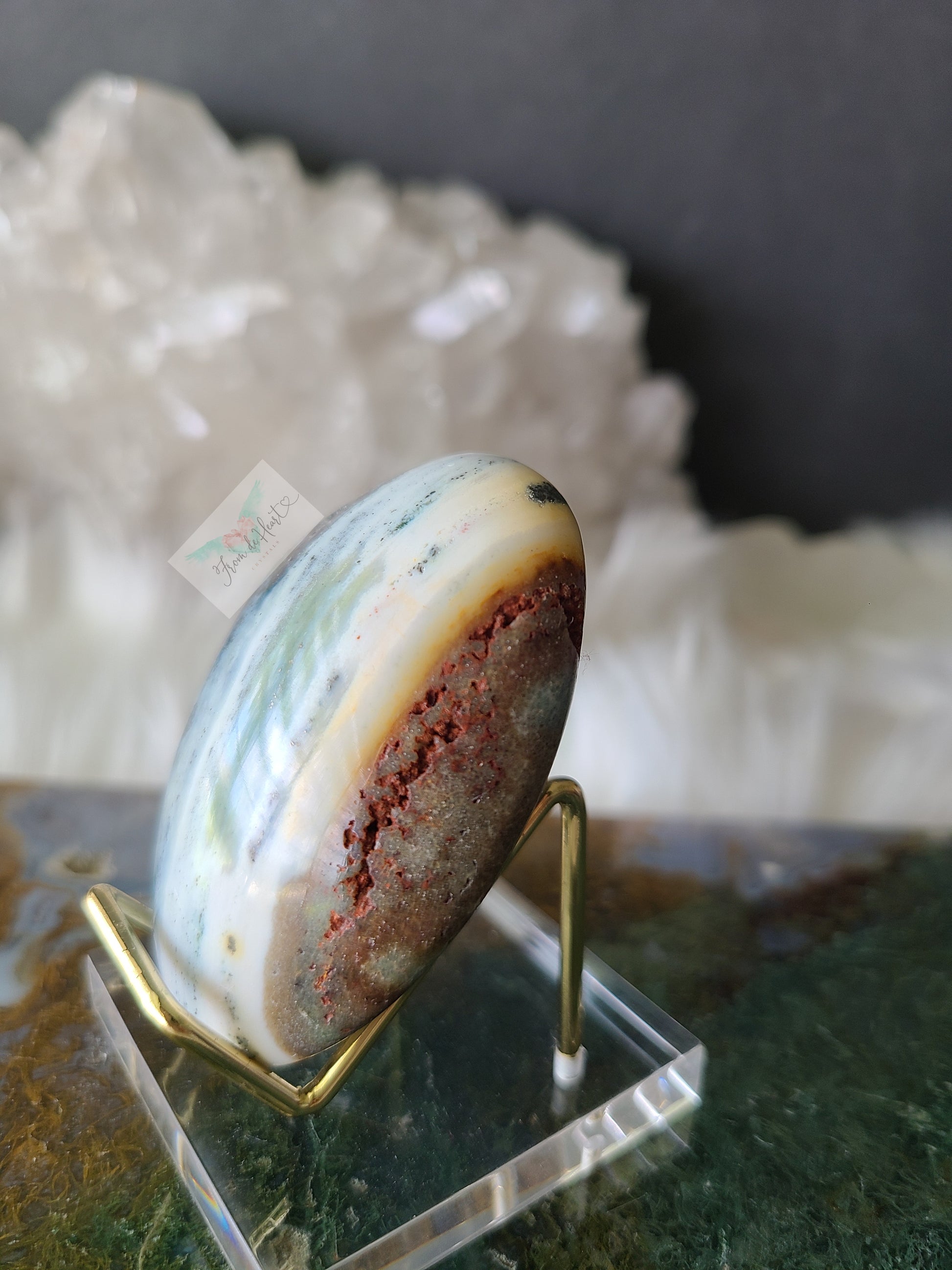 Ocean Jasper provides an uplifting but calming energy. Allegedly, if the holder lacks optimism, Ocean Jasper gives a sense of positivity, happiness, and a brighter outlook. Ocean Jasper allegedly helps the holder envision positive out comes as opposed to worst case scenarios. It cleanses energy and helps repel negativity.