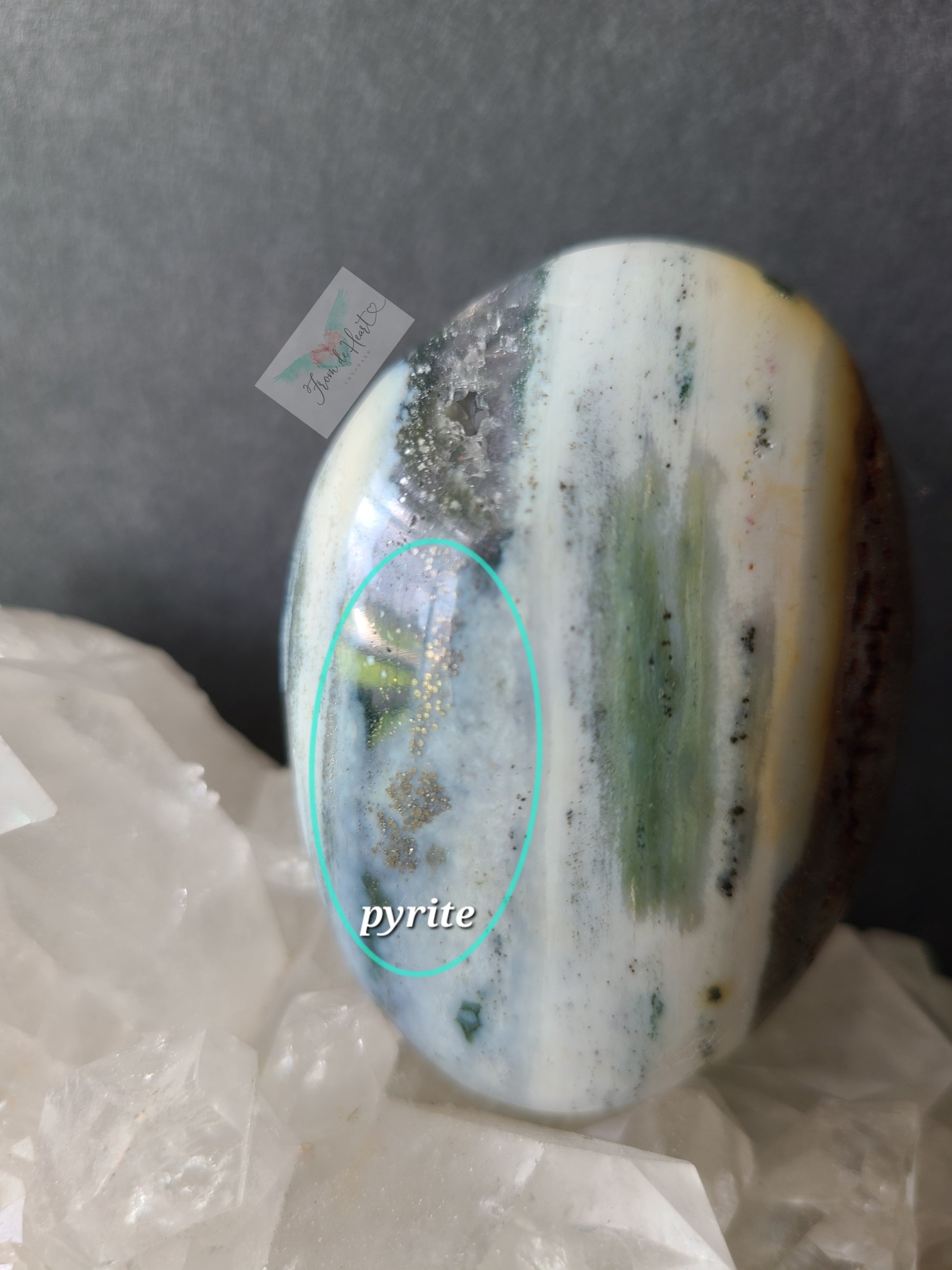 Ocean Jasper with Pyrite and Quartz Palmstone