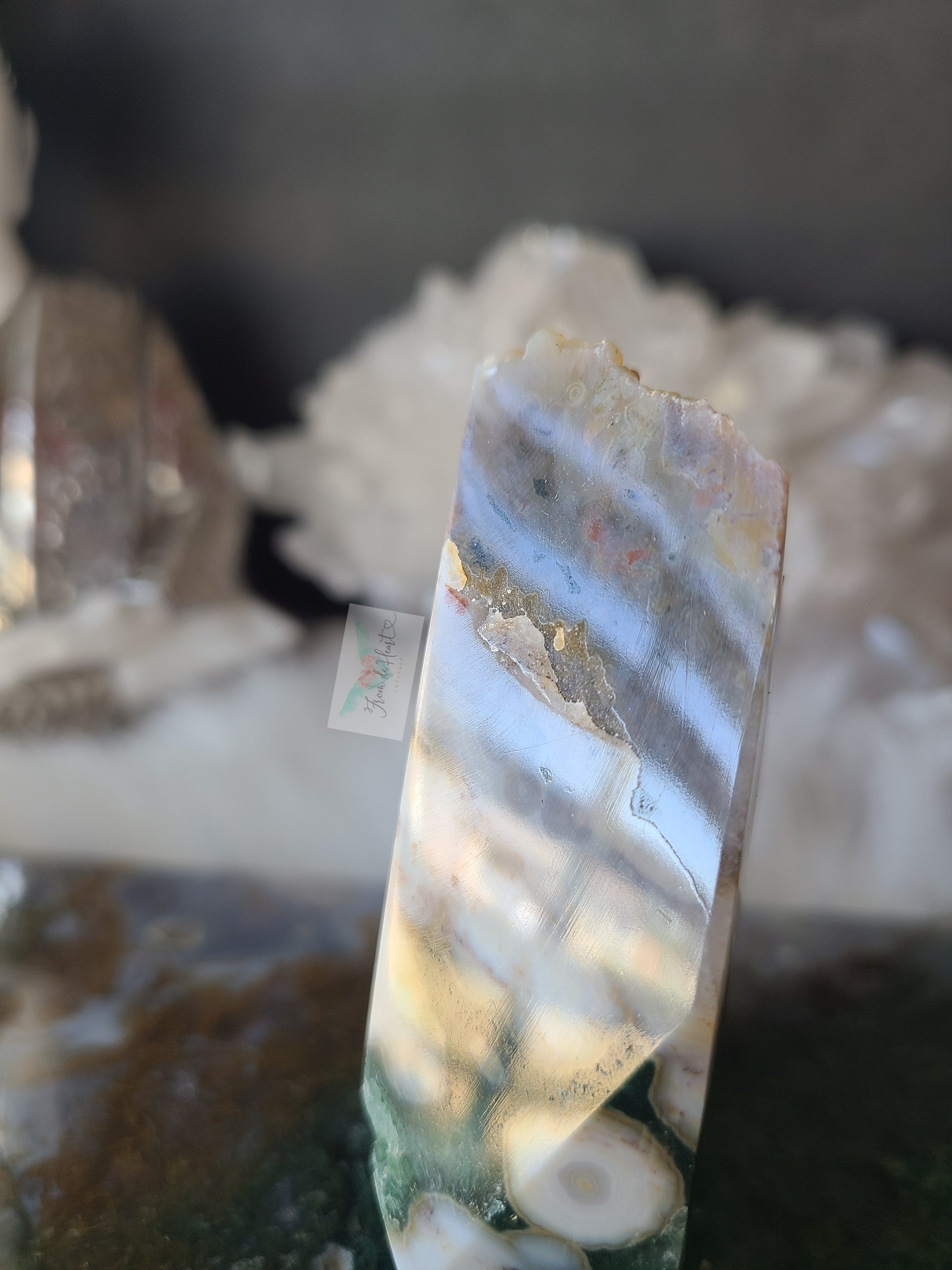 Ocean Jasper provides an uplifting but calming energy. Allegedly, if the holder lacks optimism, Ocean Jasper gives a sense of positivity, happiness, and a brighter outlook. Ocean Jasper allegedly helps the holder envision positive out comes as opposed to worst case scenarios. It cleanses energy and helps repel negativity.