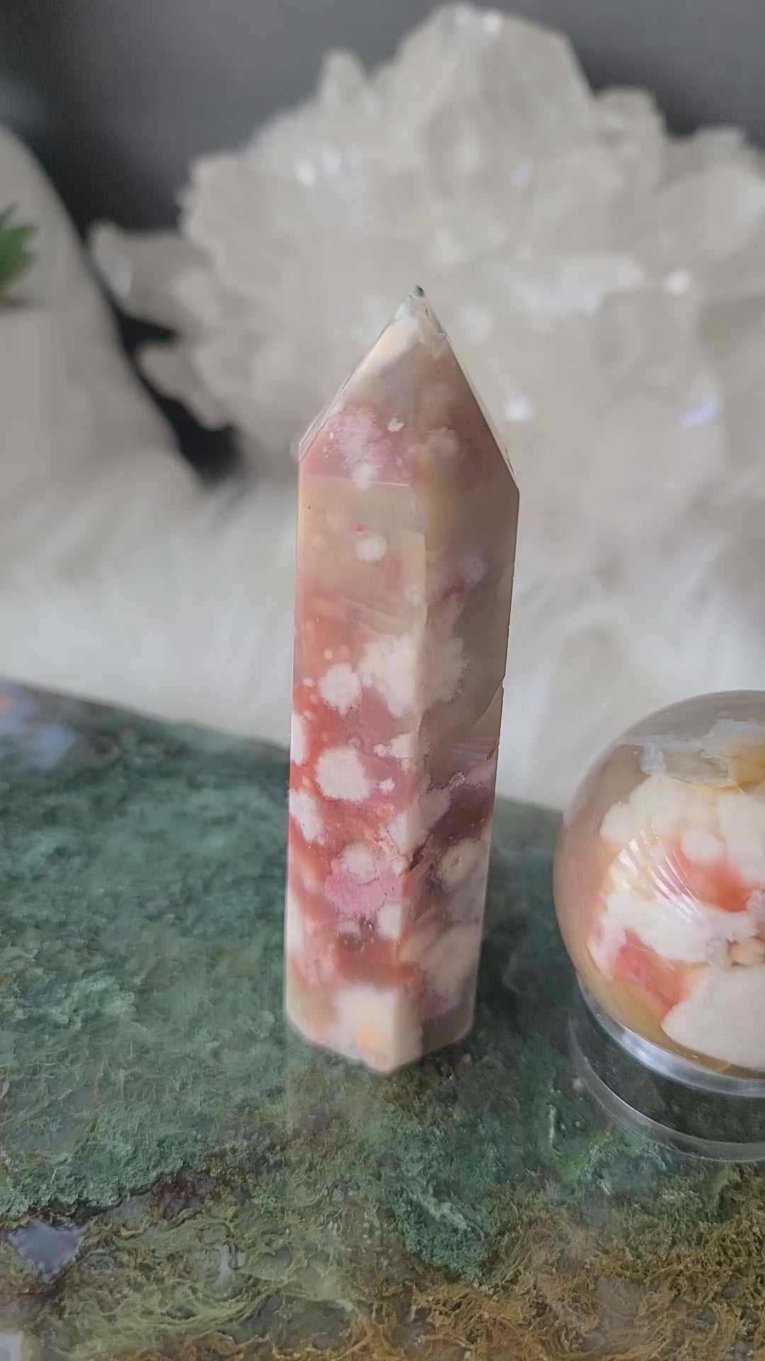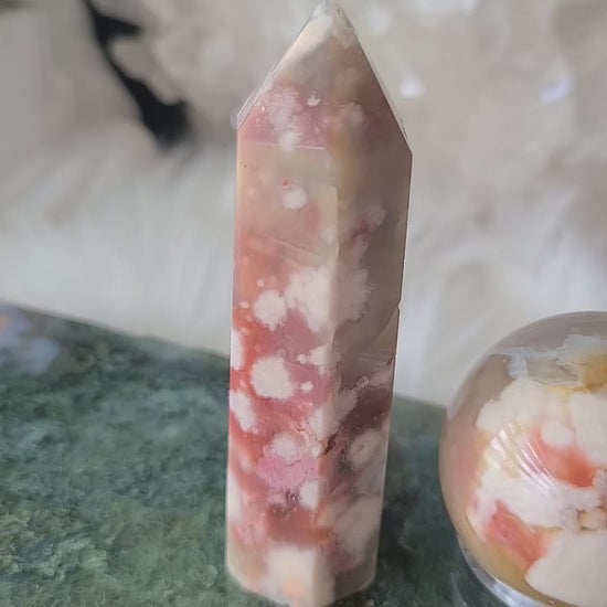 Pink and Turquoise Flower Agate Tower (RARE FIND)
