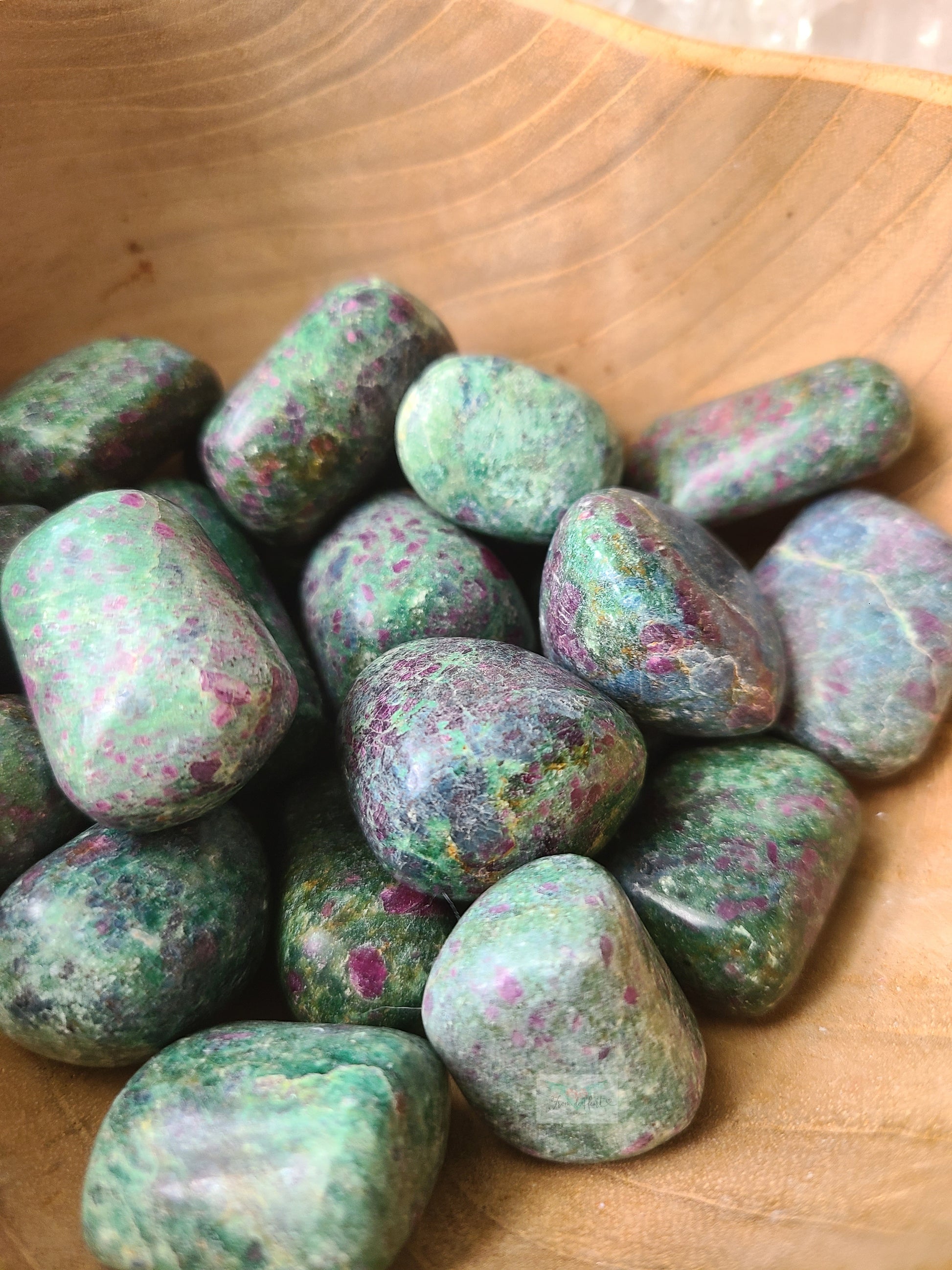 This listing is for (1) high quality Ruby in fuchsite tumble. Tumbles are intuitively chosen.