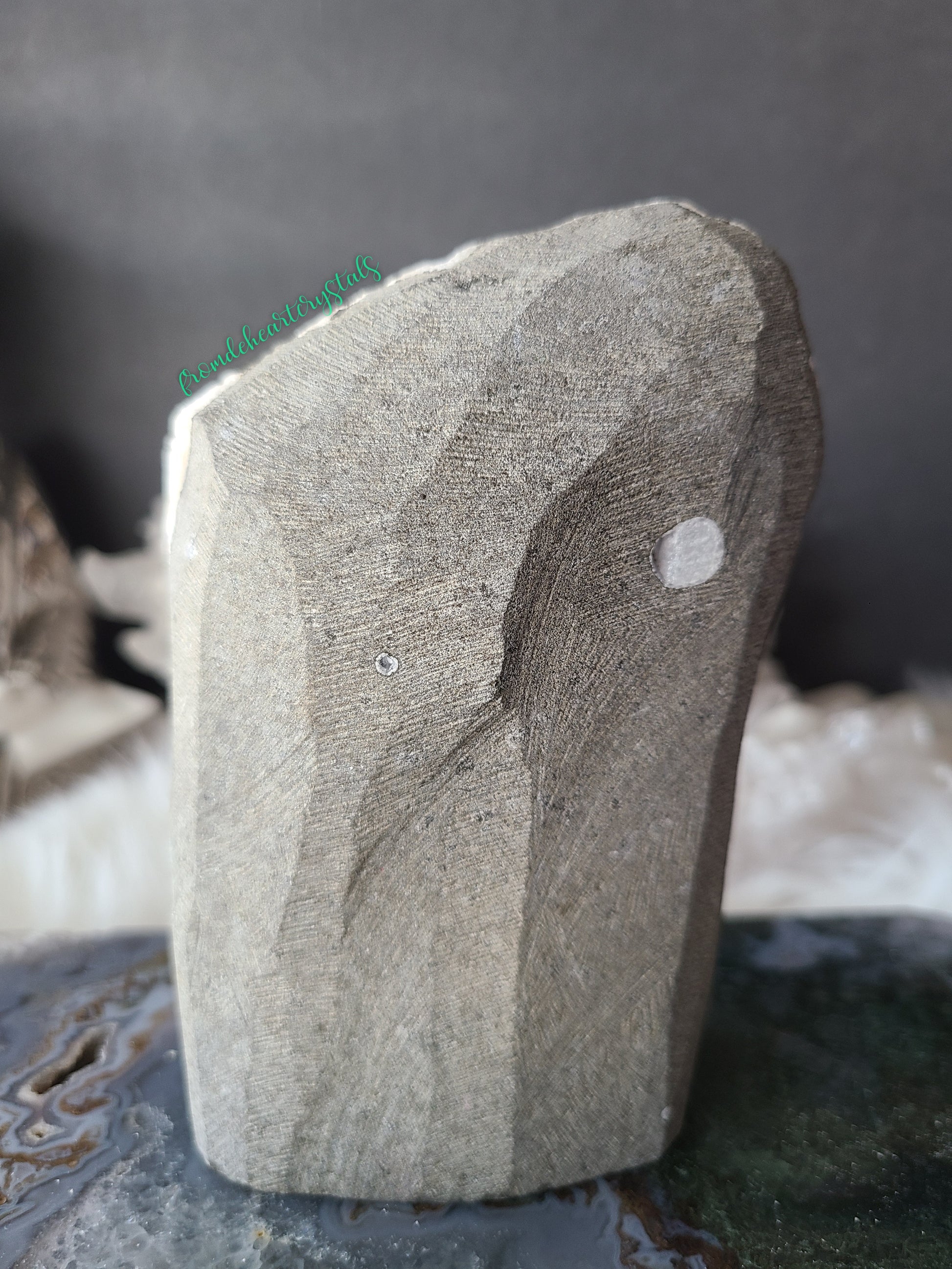 Many crystals offered in our shop are polished, but they are natural and may or may not possess imperfections including natural hairline cracks, chips, or vugs. Natural stones and minerals are imperfect by nature; thus, they may possess these imperfections. We cannot guarantee perfect products, points, or facades. We endeavor to underscore imperfections in photos or by written descriptions.