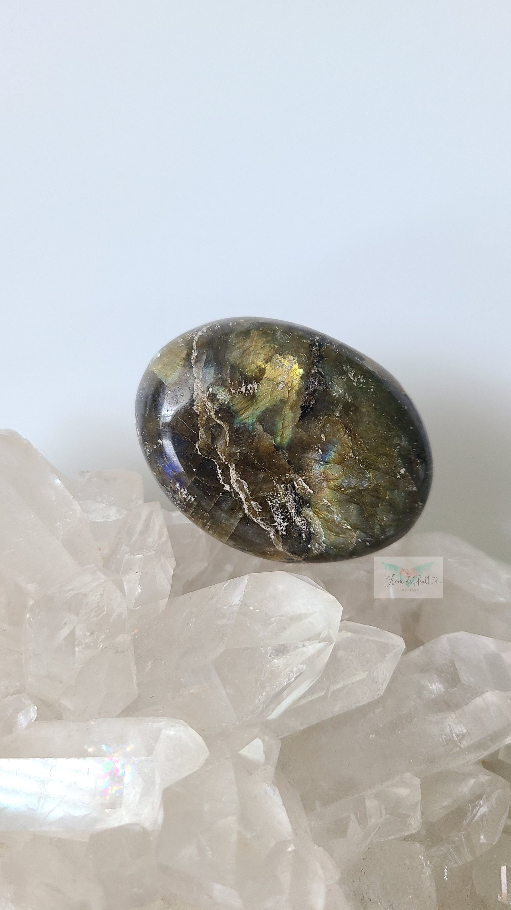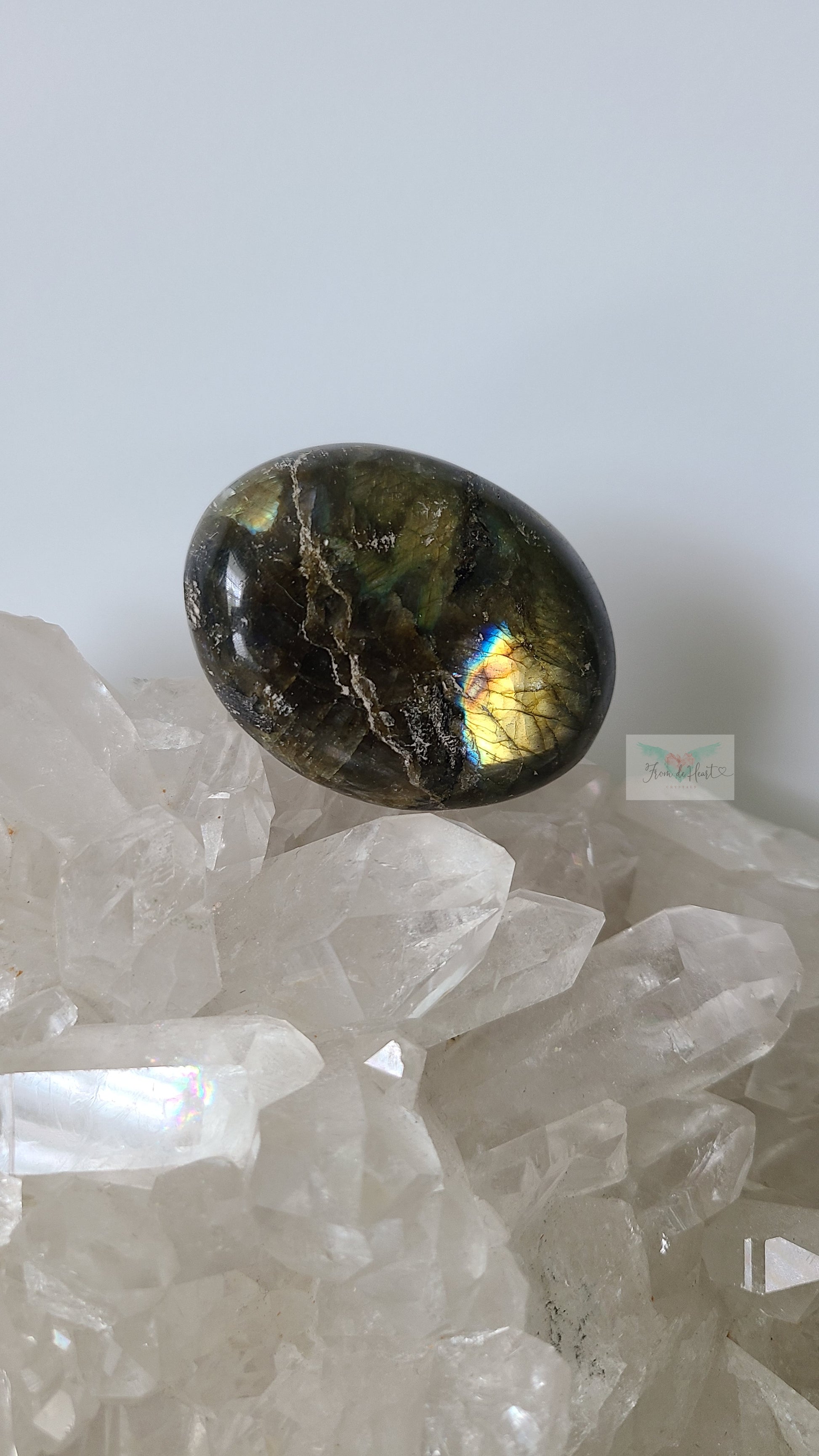 Discovered in Labrador, Canada. Labradorite is the stone of transformation and is associated with magic. Its iridescent colorful flashes (schiller) span the spectrum of hues in the rainbow. Labradorite's various vibrant colors reminds the holder of the wonder and miracles of life. Labradorite is protective yet it emits a comforting energy. It energizes the holder, and evokes imagination and inspiration. Labradorite elevates intuition and enhances personal power.